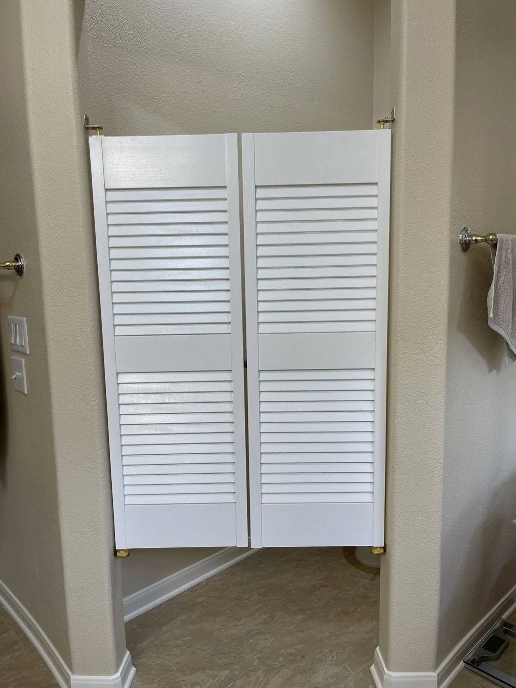 Random handyman work encompasses a variety of tasks, from carefully hanging new light fixtures, shower doors and securely setting up mailbox stands to installing unique louvered saloon doors that stylishly separate interior spaces, enhancing a home's functionality and charm.